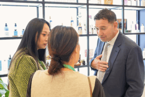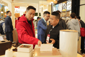 展会期间,观众的热情与展区氛围交织成一场流动的盛宴。展厅内的香氛体验、个护产品试用等环节让现场的气氛热烈非常。明辉副总裁刘子刚先生和程俊华先生也亲临现场,与来自世界各地的客人们共同探讨环保理念在酒店场景中的创新实践。