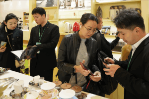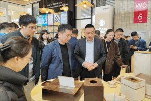 3月31日下午,酒店与商业空间博览会的官方直播间也来到了明辉。明辉集团华东区总经理丁飞,在镜头前介绍了产品背后的创新设计与可持续理念,让观众们通过直播“云逛展”,足不出户也能感受绿色旅居的魅力。更有幸运观众通过互动抽奖,赢得了限量版Jurlique洗护套装,将展会的温度带回家中。