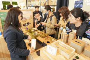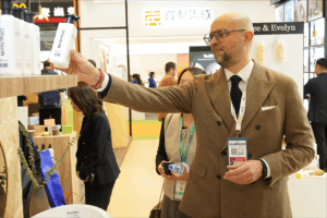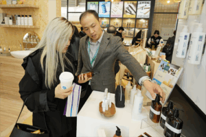 Gentlemen’s Tonic等高端洗护品牌。Lanvin,Ahava的品牌方也来到展厅,从“成分趋势”到“香型偏好”,深入介绍了产品的核心优势。国际洗护美学与环保理念交织,为人们奉上一场嗅觉与触觉的精致体验。