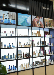 移步品牌展示区,这里展示着Molton Brown,Lanvin,Ahava,Jurlique,Lebon,